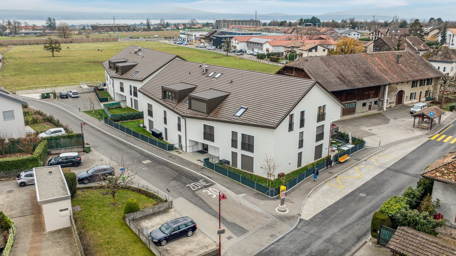 Ce projet a été développé sur une parcelle de la Commune de Chavannes-de-Bogis, située au centre du village le long de la route de Bogis-Bossey. Cette parcelle était détenue par un agriculteur et affectée en zone village dont les droits à bâtir étaient partiellement utilisés par le rural existant, occupé par le propriétaire pour son habitation et une partie pour son exploitation. C’est fin 2018 qu’un accord a été trouvé avec cet agriculteur et la Commune pour morceler la parcelle et permettant ainsi à Realitim de développer les droits à bâtir restants et à l’agriculteur de conserver son rural dans le but de continuer à l’exploiter encore quelques années et à y habiter.