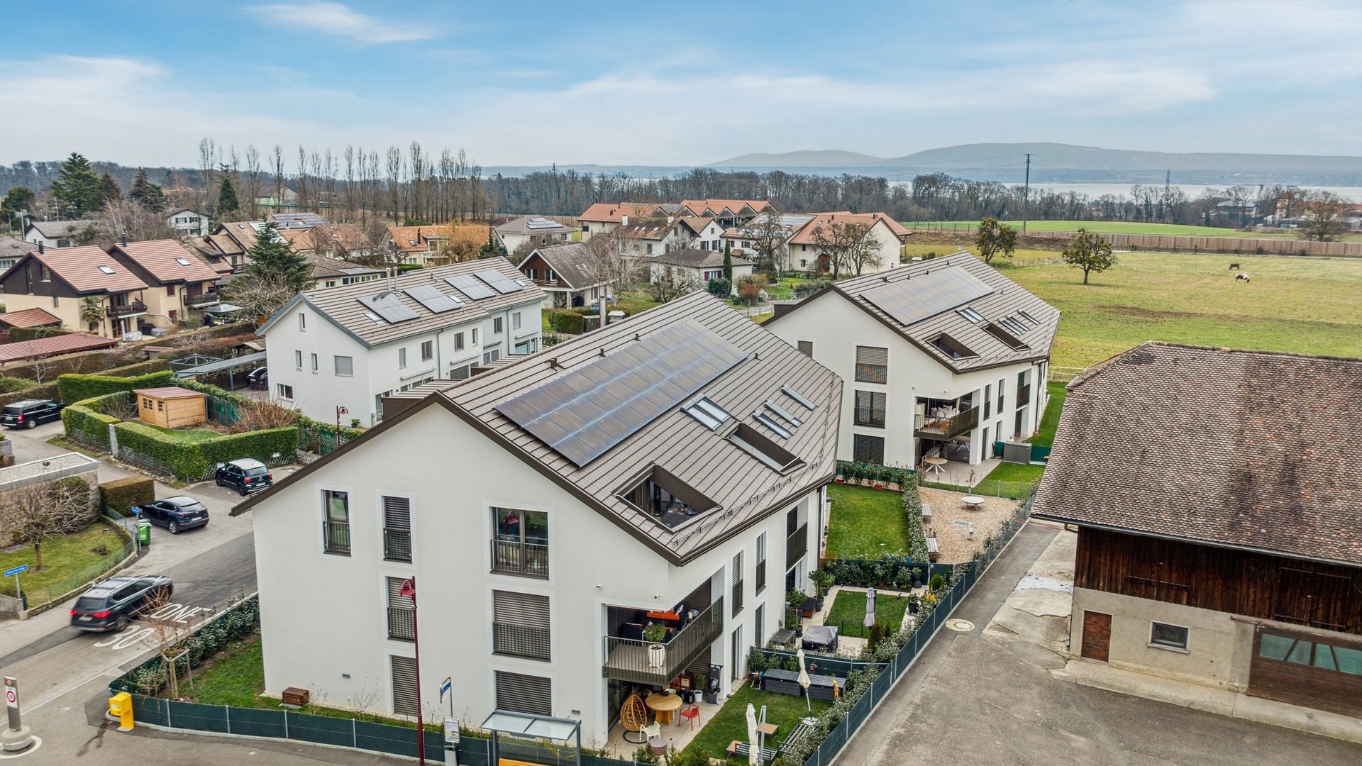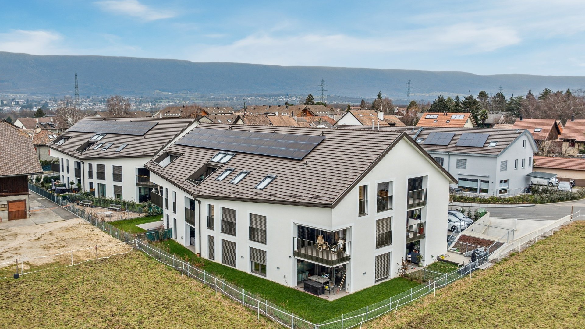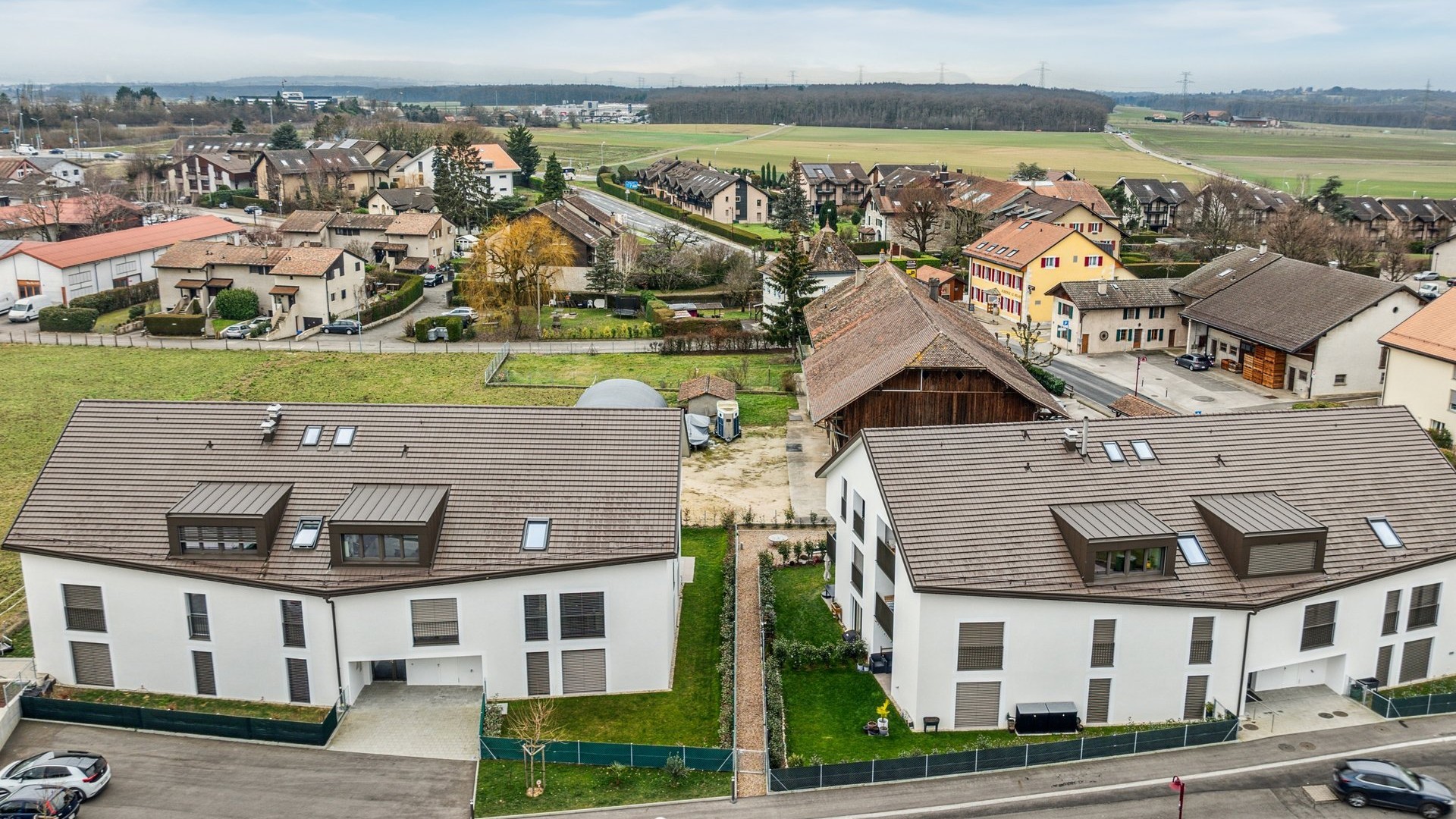 Realitim a ensuite développé un projet avec une architecture s’intégrant parfaitement dans le milieu bâti du village de Chavannes-de-Bogis. C’est en été 2021 que Realitim a obtenu le permis de construire permettant la réalisation de 28 appartements PPE répartis sur deux bâtiments labelisés MINERGIE-P de 14 logements chacun. Le projet propose une typologie d’appartements diversifiée allant du studio au 4,5 pièces. Il est complété par un parking souterrain et des aménagements extérieurs soignés offrant des jardins privatifs aux appartements du rez-de-chaussée ainsi qu’une place de jeux aux futurs habitants. Les bâtiments sont dotés de panneaux photovoltaïques en toiture avec une production de chaleur assurée par une chaudière à pellets. Les travaux ont débuté en novembre 2021 et se sont achevés avec une livraison en 2023.
