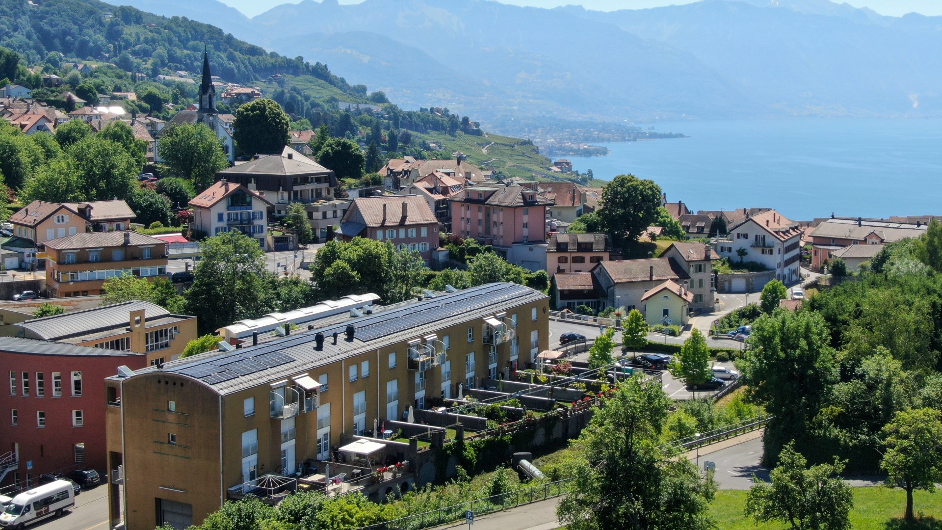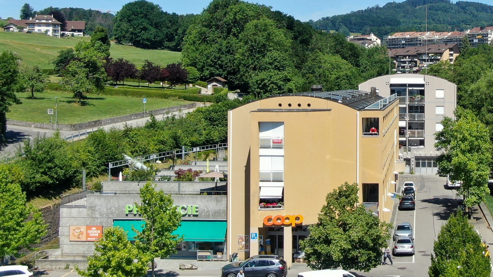 Les immeubles ont été achetés à la commune de Chexbres en juin 2020. Idéalement situés en plein centre, un des immeubles intègre la Coop du village ainsi qu’une pharmacie. Construits en 1995, ces immeubles comprenaient 28 logements subventionnés dans les étages et 20 places de parc au sous- sol. Le rez-de-chaussée accueille des activités (COOP, Police de l’Ouest Lausannois, services techniques communaux).