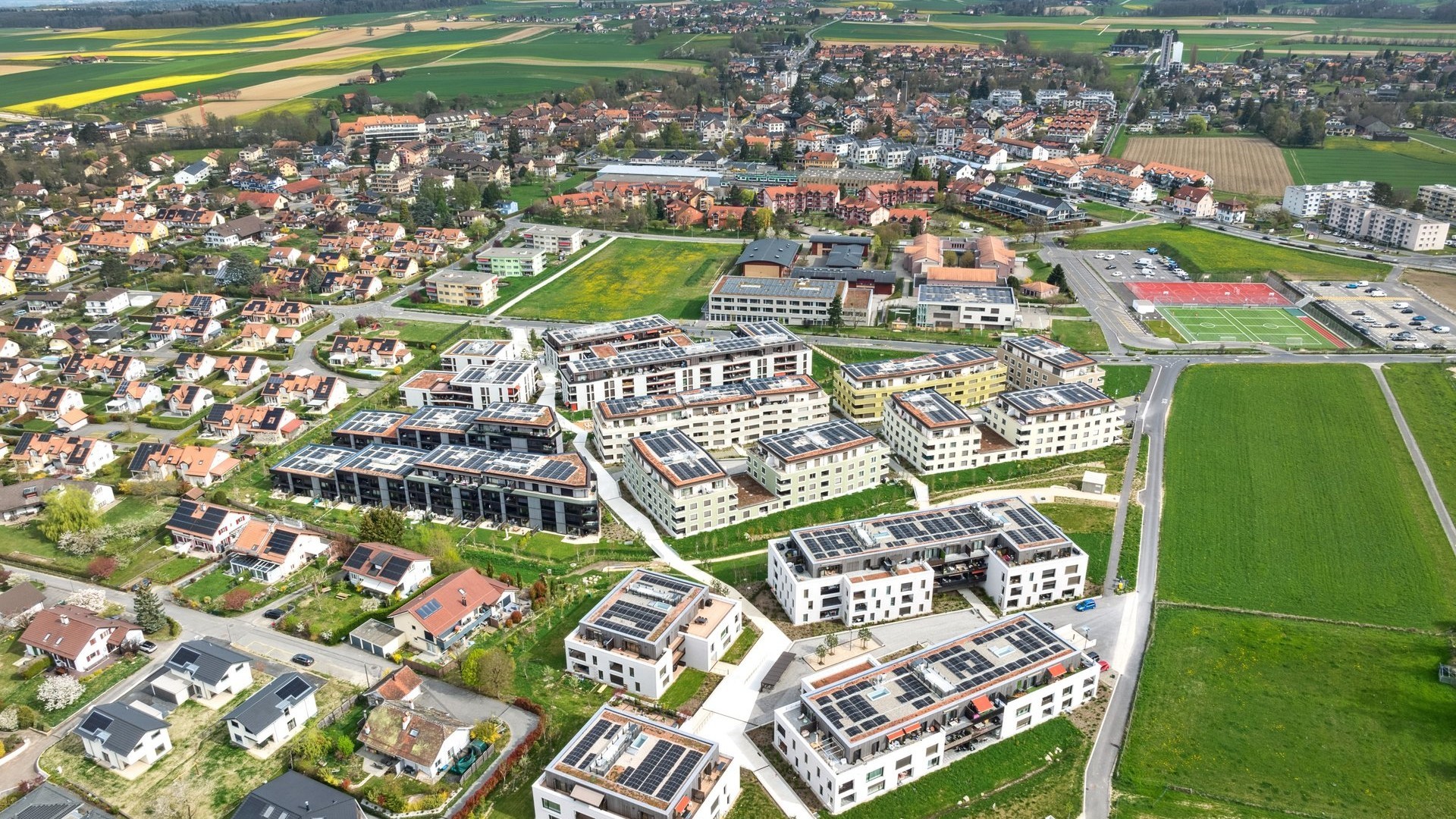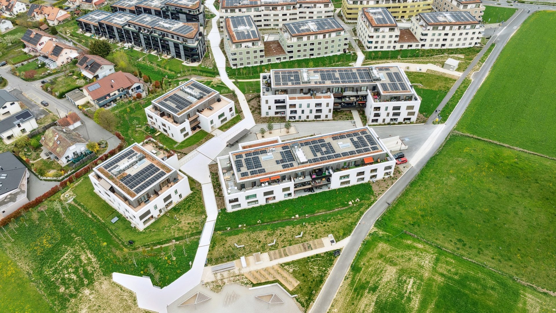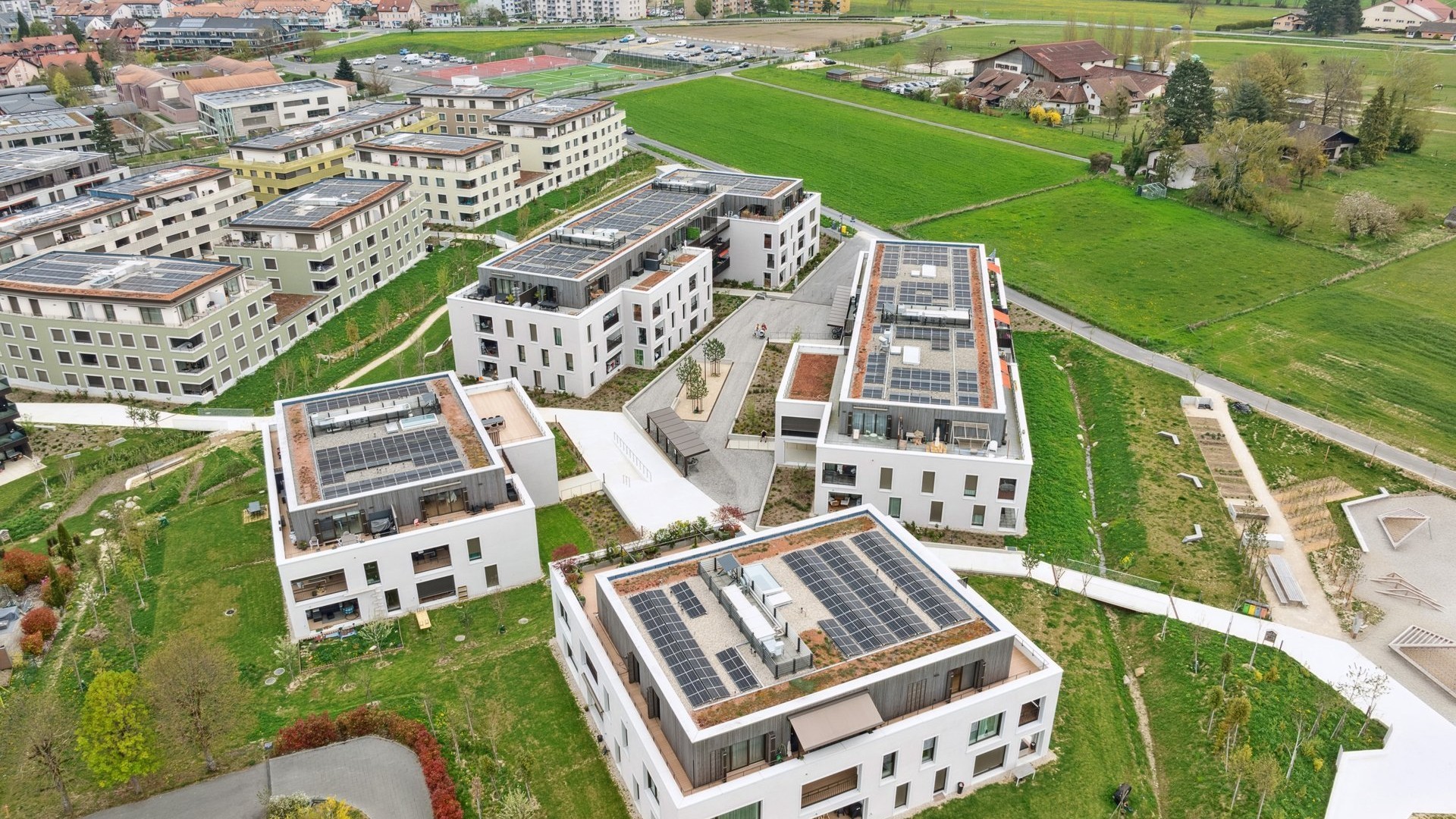 La construction répond aux plus hauts standards en matière d’efficience énergétique et de développement durable (Minergie P/ECO), ainsi qu’aux dernières normes éditées par les professionnels de la construction. La construction de l’écoquartier OSIRIS constitue bien une nouvelle étape clé dans l’histoire d’Echallens : c’est celle d’un champ de blé devenu un lieu de vie, de partage et de relations. Mais un quartier durable c’est aussi, privilégier la mobilité douce, s’insérer dans les réseaux écologiques et viser la qualité écologique des espaces ouverts et du cycle de l’eau, ainsi que minimiser les impacts des polluants et des nuisances, notamment pas la diminution de la production des déchets, l’amélioration de la réutilisation et du recyclage. Dans l'ensemble du quartier, Equitim a réalise 135 appartements et 2 surfaces d’activité répartis sur 4 immeubles d’habitation en DDP. 80 lots sont en loyer libre et 55 en LLA.