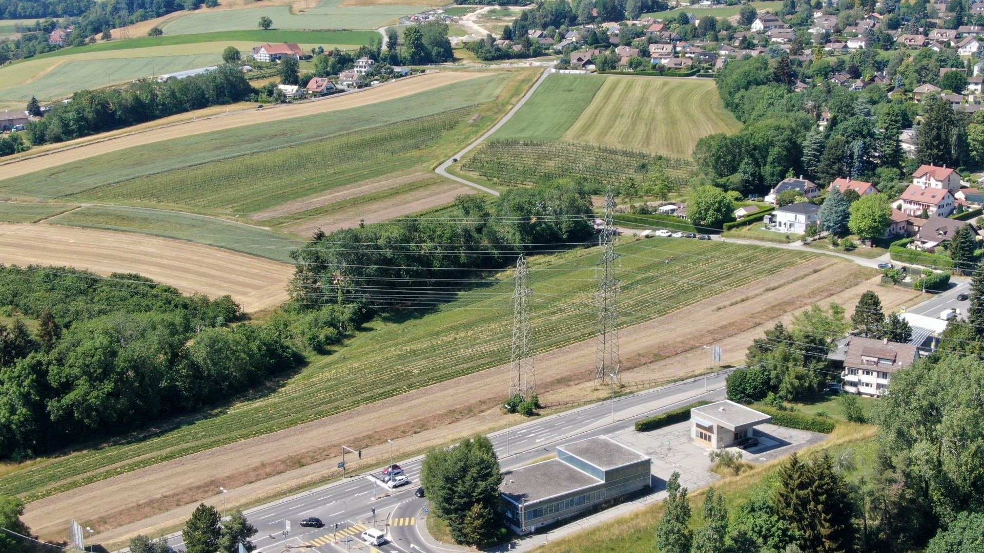 Le quartier est aménagé en fonction de la topographie du terrain afin de maximiser les transparences et les vues sur la nature environnante, tout en conservant des bâtiments de faible hauteur. Les attiques de ces bâtiments sont travaillés pour reprendre la structure urbaine des alentours. Cette fragmentation des volumes permet de constituer un grain qui, en écho aux maisons riveraines, libère les vues et perspectives en tout point du site. Ce projet labellisé Minergie P. sera au bénéfice d’une production de chaleur de type pompe à chaleur (PAC) + sondes géothermiques et des panneaux photovoltaïques.