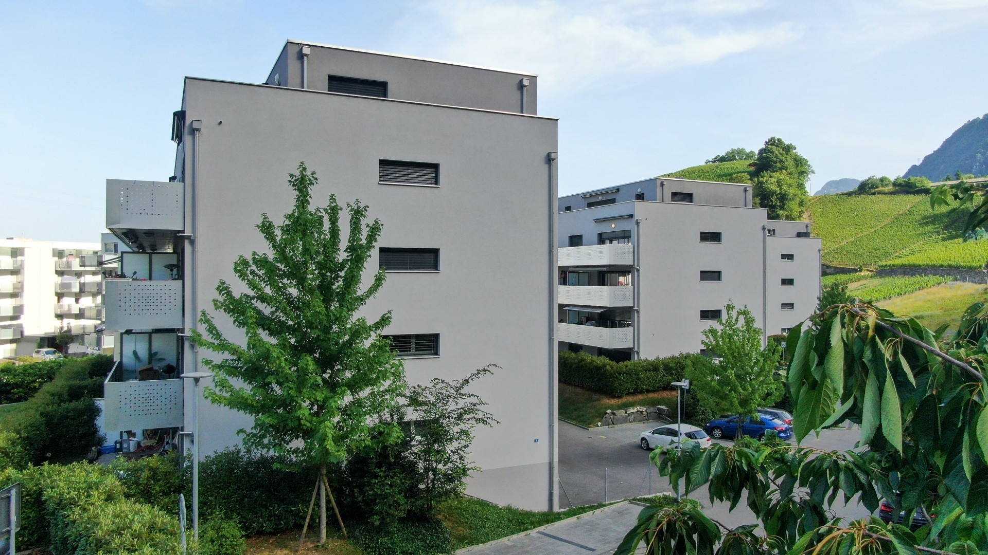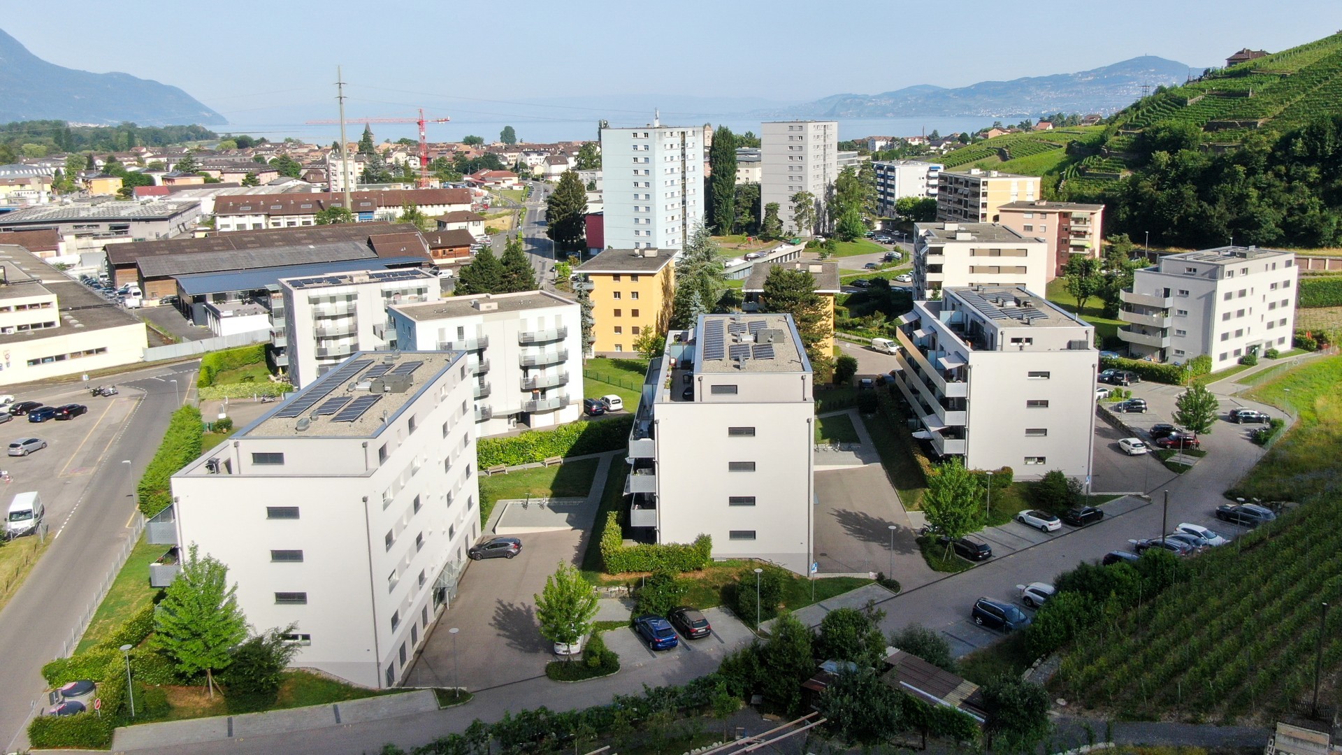 Situé au pied d’un coteau viticole, le site bénéficie d’une orientation idéale, ouvrant sur le Lac Léman et les Dents du Midi. La gare CFF et toutes les commodités sont directement accessibles à proximité. La livraison du développement a eu lieu fin 2017.